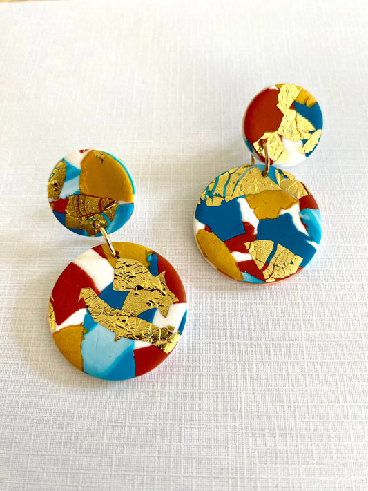 The collection includes stunning polymer clay earrings, crafted with care and attention to detail. They feature silver-plated hypoallergenic fixtures and gold-plated jump rings, ensuring both elegance and comfort.