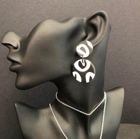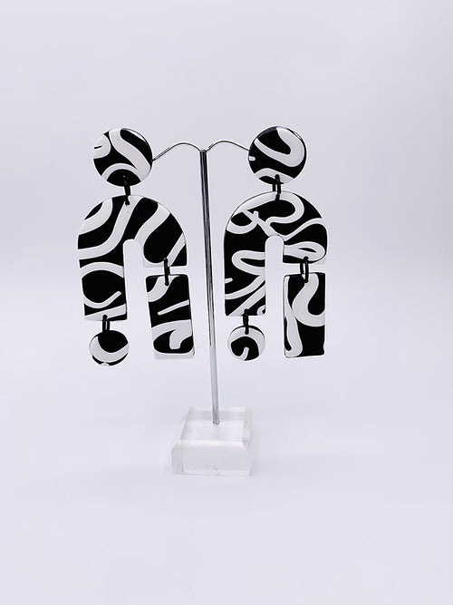 No Shrinking Violet - Songlines - Statement Shape Earrings: Black / White
