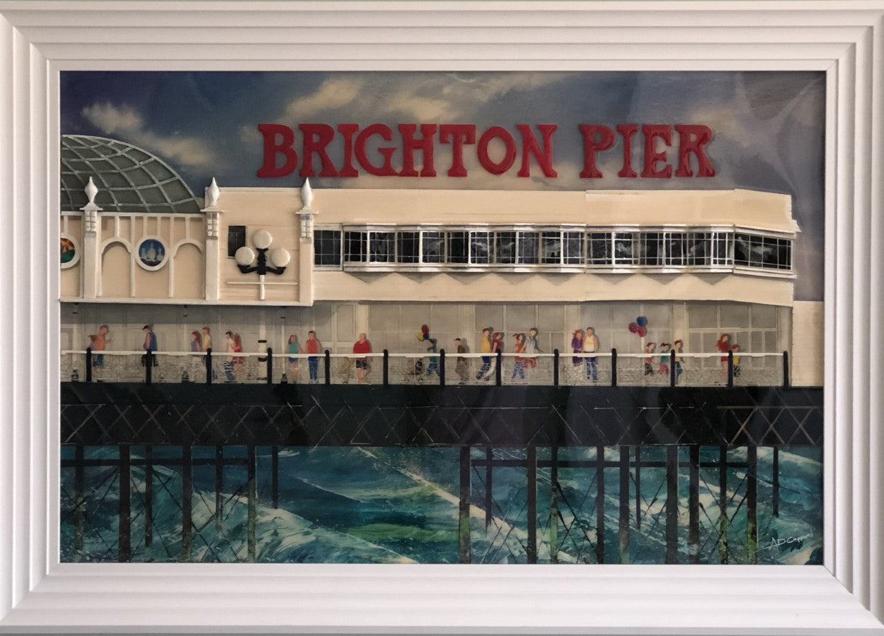 This vibrant artwork captures the dynamic architecture of Brighton Pier, the ever-changing sea, and the lively atmosphere created by people strolling along. Each element contributes to the overall sense of energy and movement.