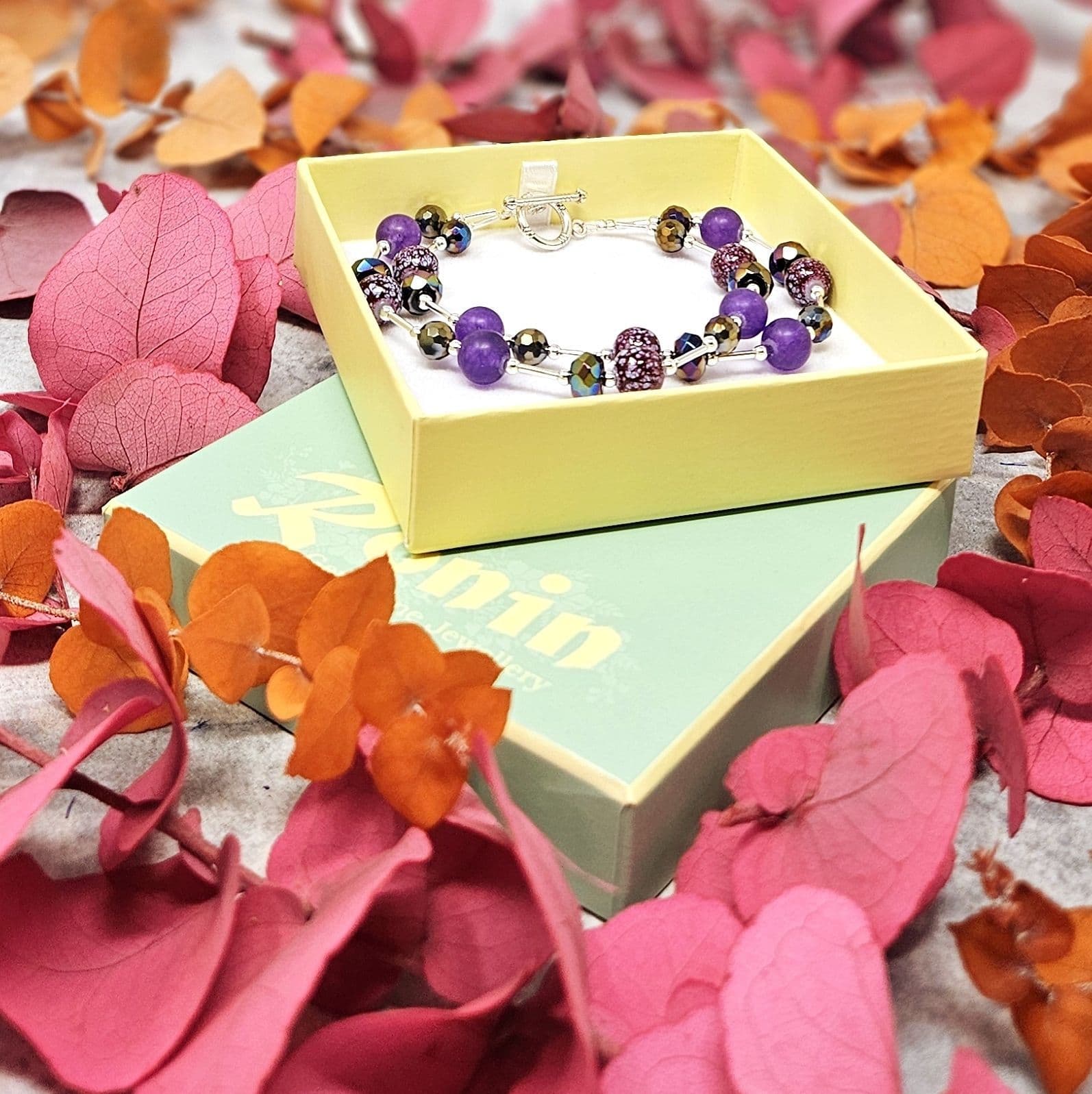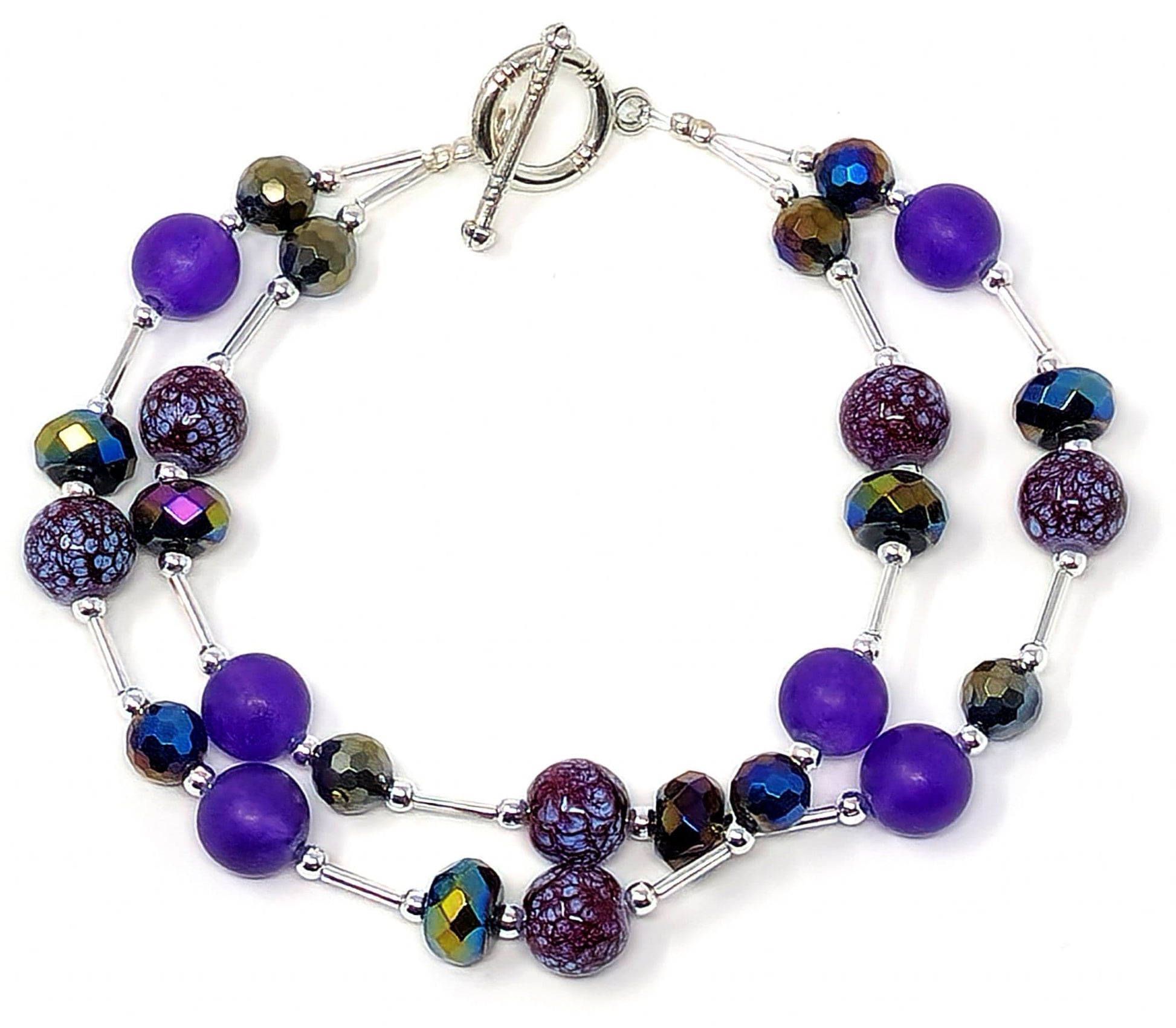 Purple semi-precious gemstone beads, with glass beads & plated Agate gemstones..