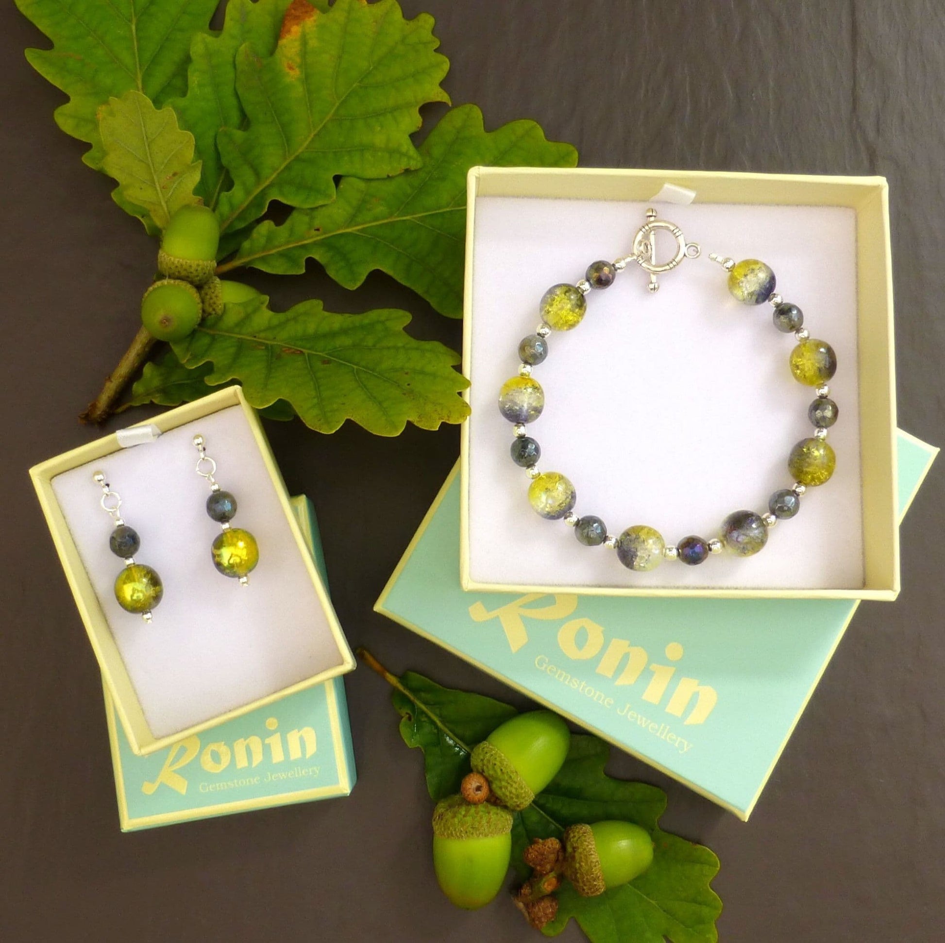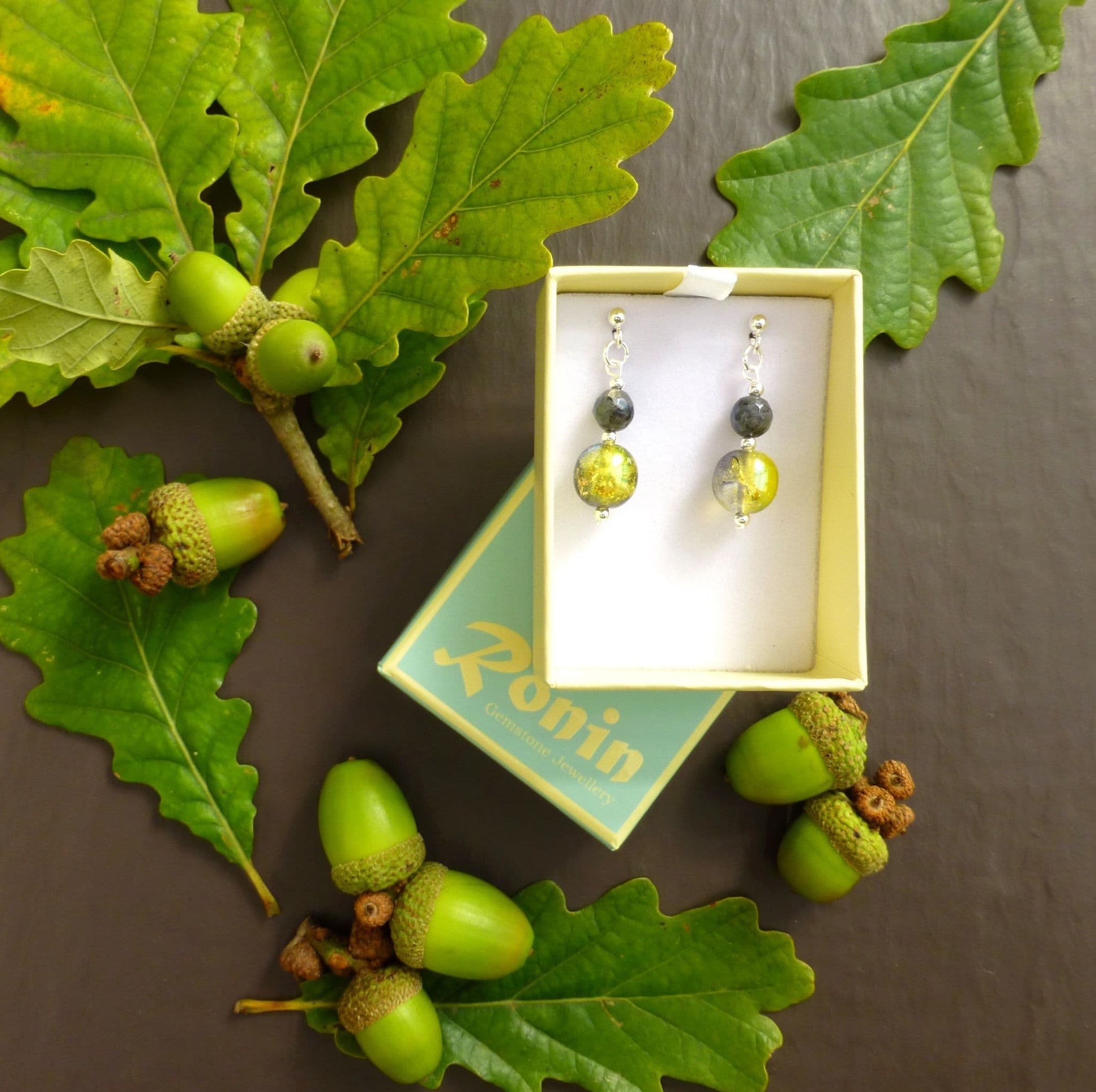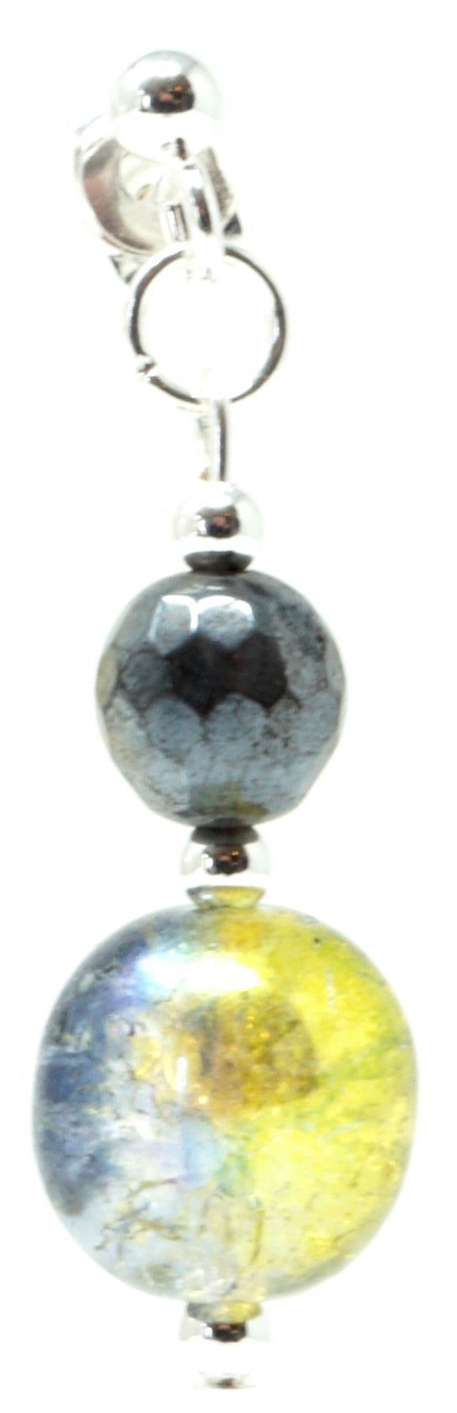 Colourful Czech glass bead, with a faceted Labradorite gemstone above.