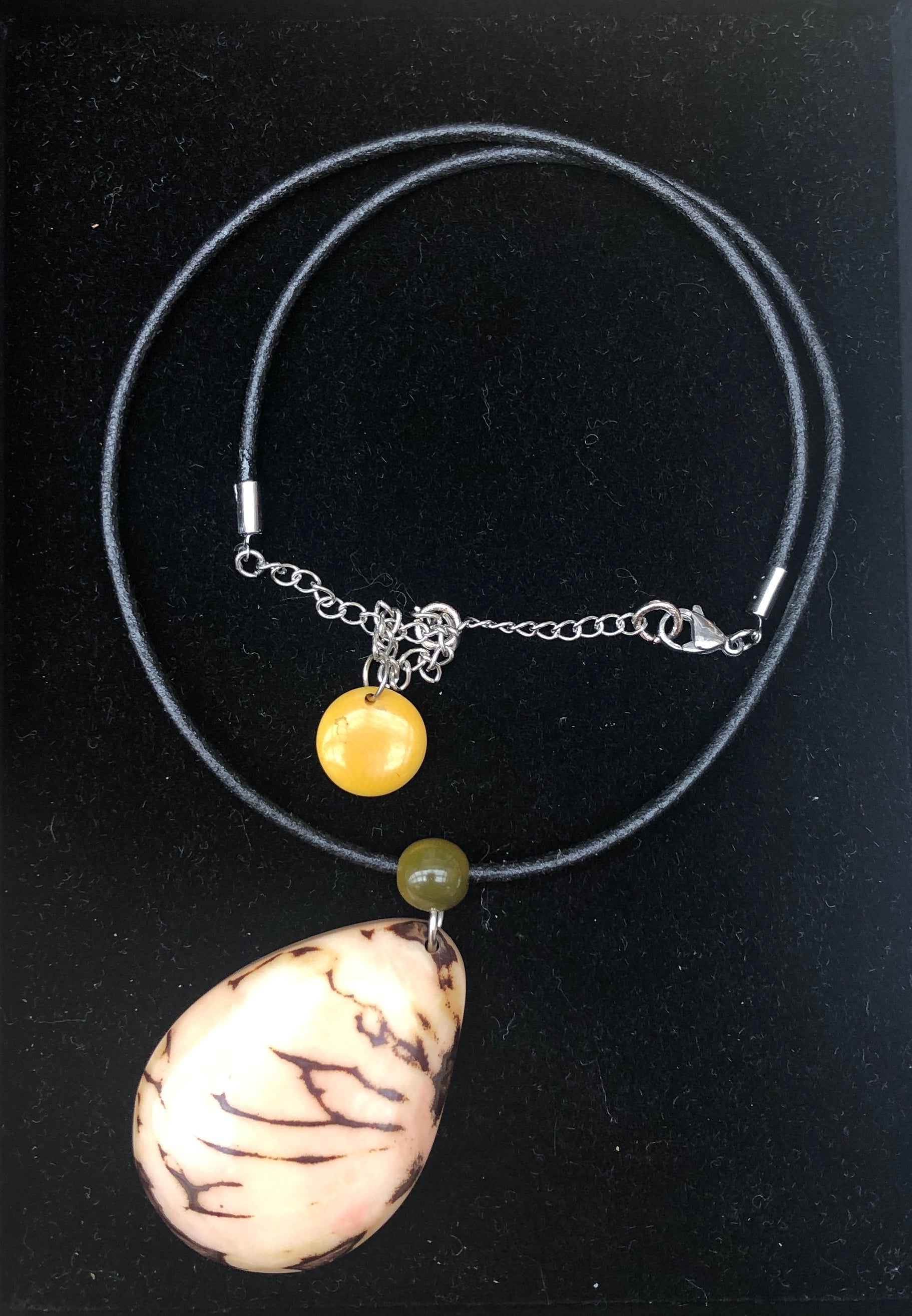 Beautifully designed and made with the natural, Tagua nut, this natural jewellery is entirely handmade from an Amazon seed: TAGUA, also called VEGETABLE IVORY.