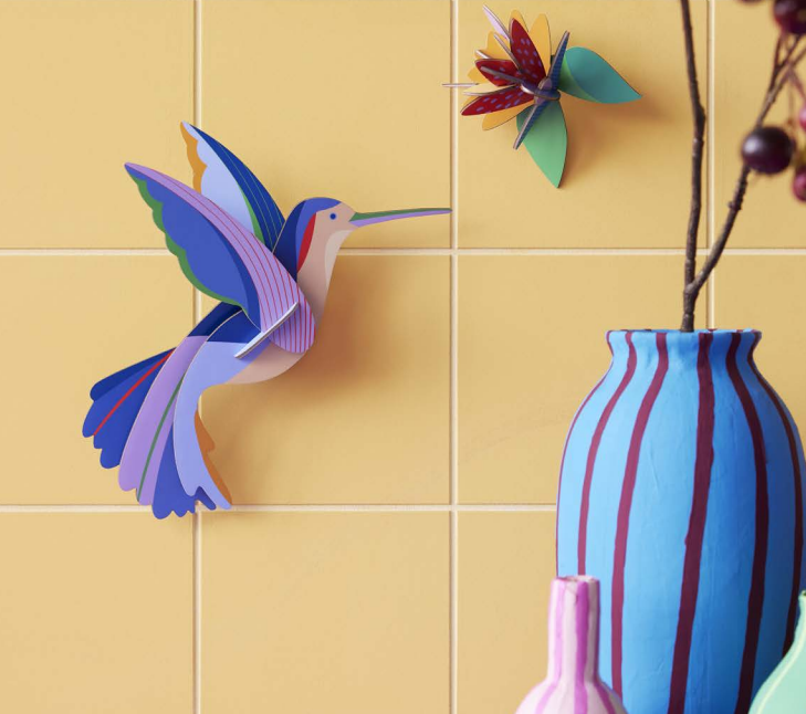 These birds of paradise out of recycled cardboard are special treasures for your home: always colourful and alluring with their striking graphic patterns. The lagoon-like blue and the warm pink of a sunset will instantly transport you to a tropical island.
