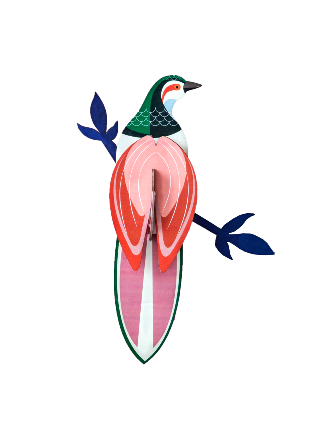 Rani's plumage of green, pink and red betrays its slightly mischievous character.