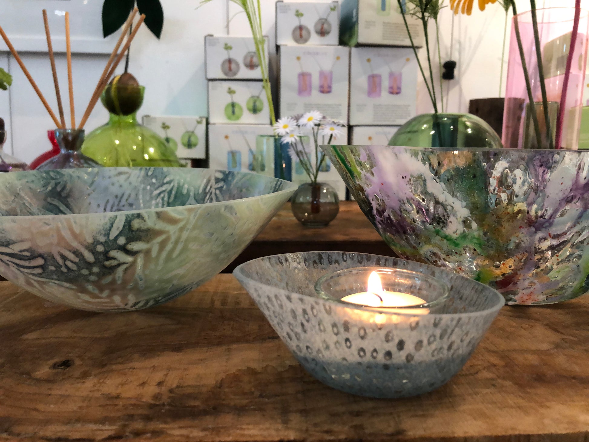 'Fire & Ice' - Delicate Tealight Bowl - Handcrafted Kiln Formed Glass Bowl
