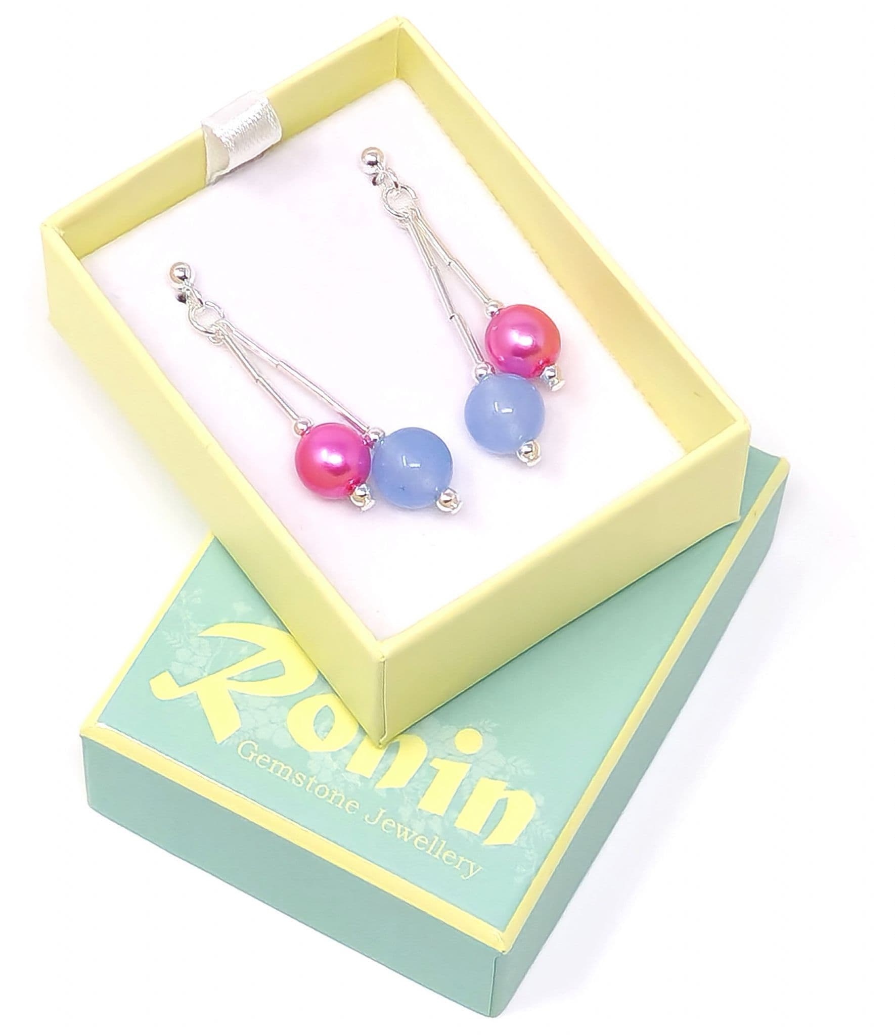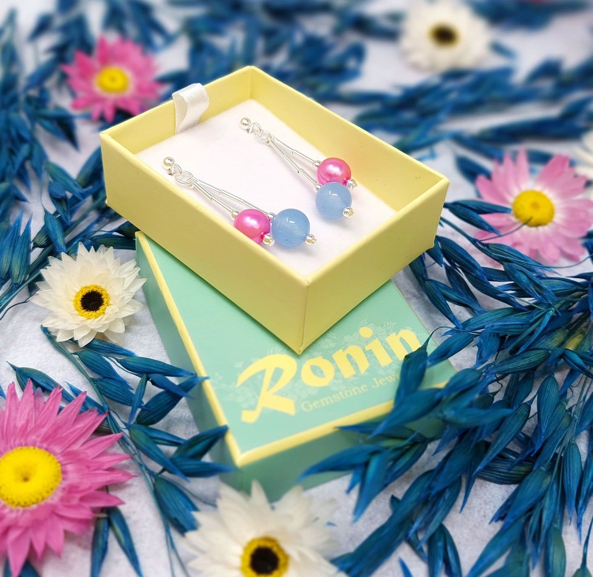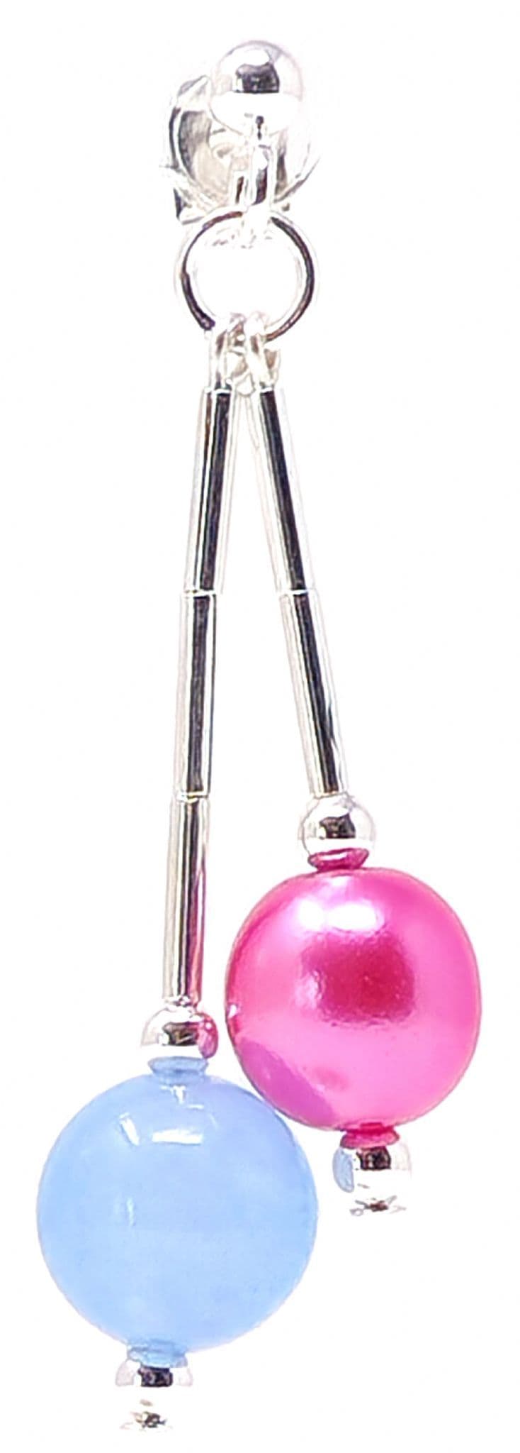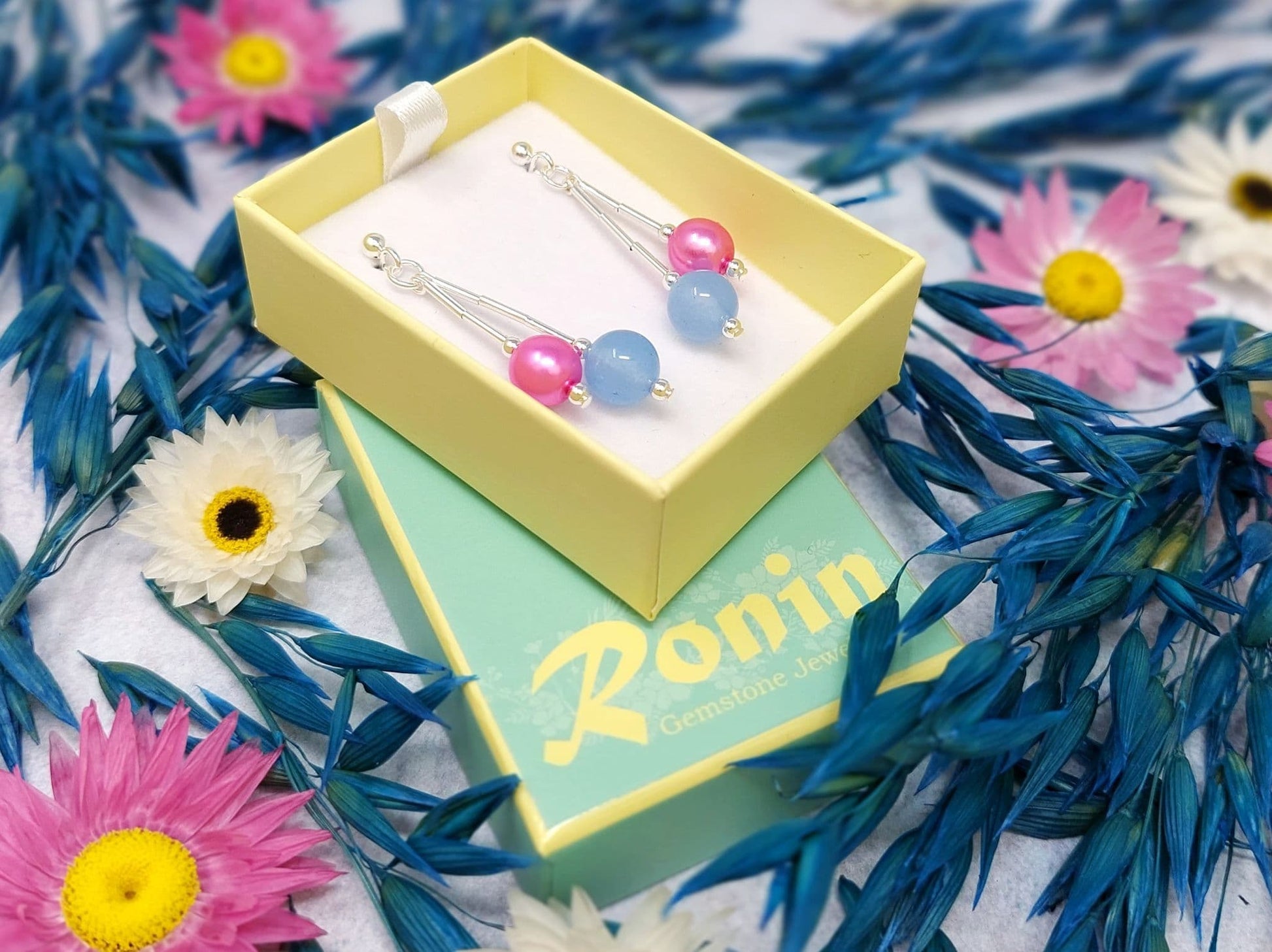 Blue Agate gemstone beads & pink glass pearls. Silver plated spacer beads.