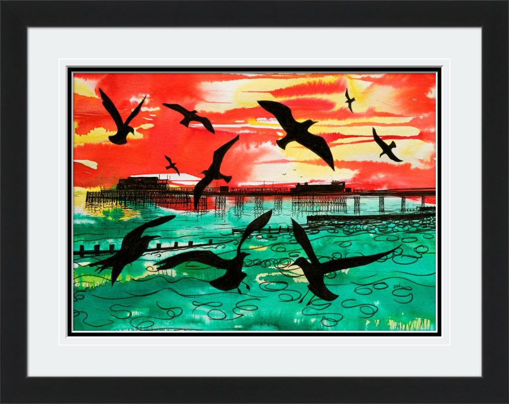 “Dance at Sunset,” with seagulls in flight, A moment of magic, in the fading light.