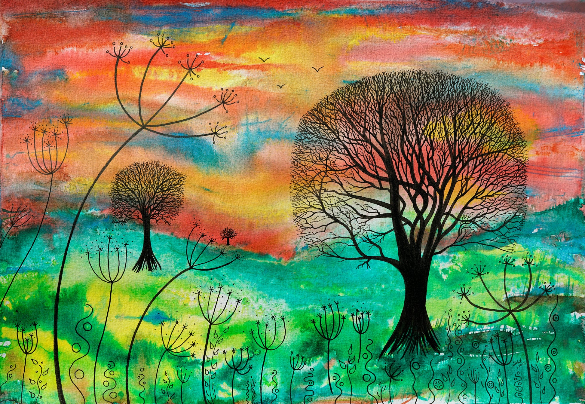 With every stroke, the scene is spun, A frolic beneath the setting sun.