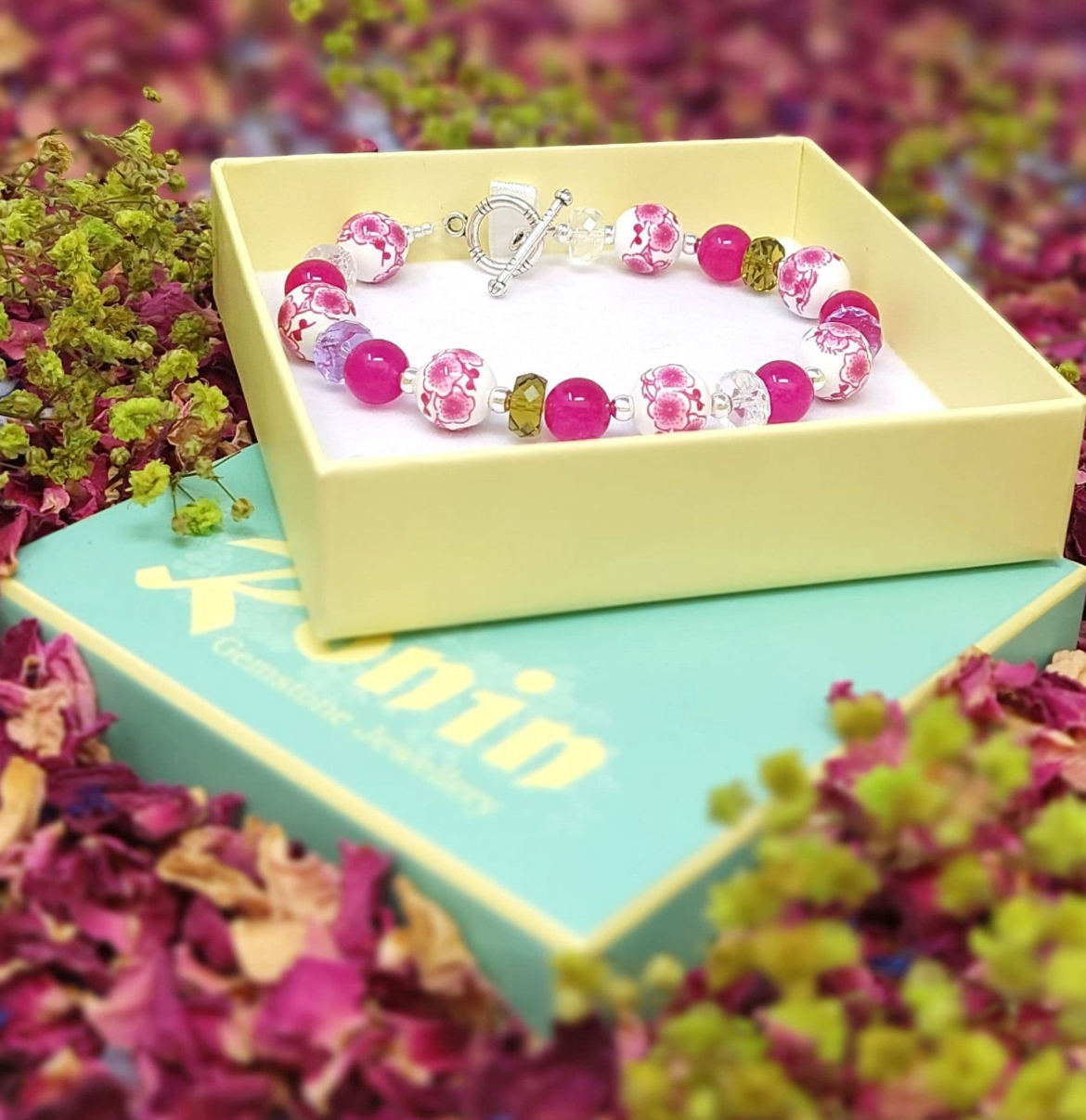 Patterned Porcelain along with dyed gemstone beads & Crystal beads.