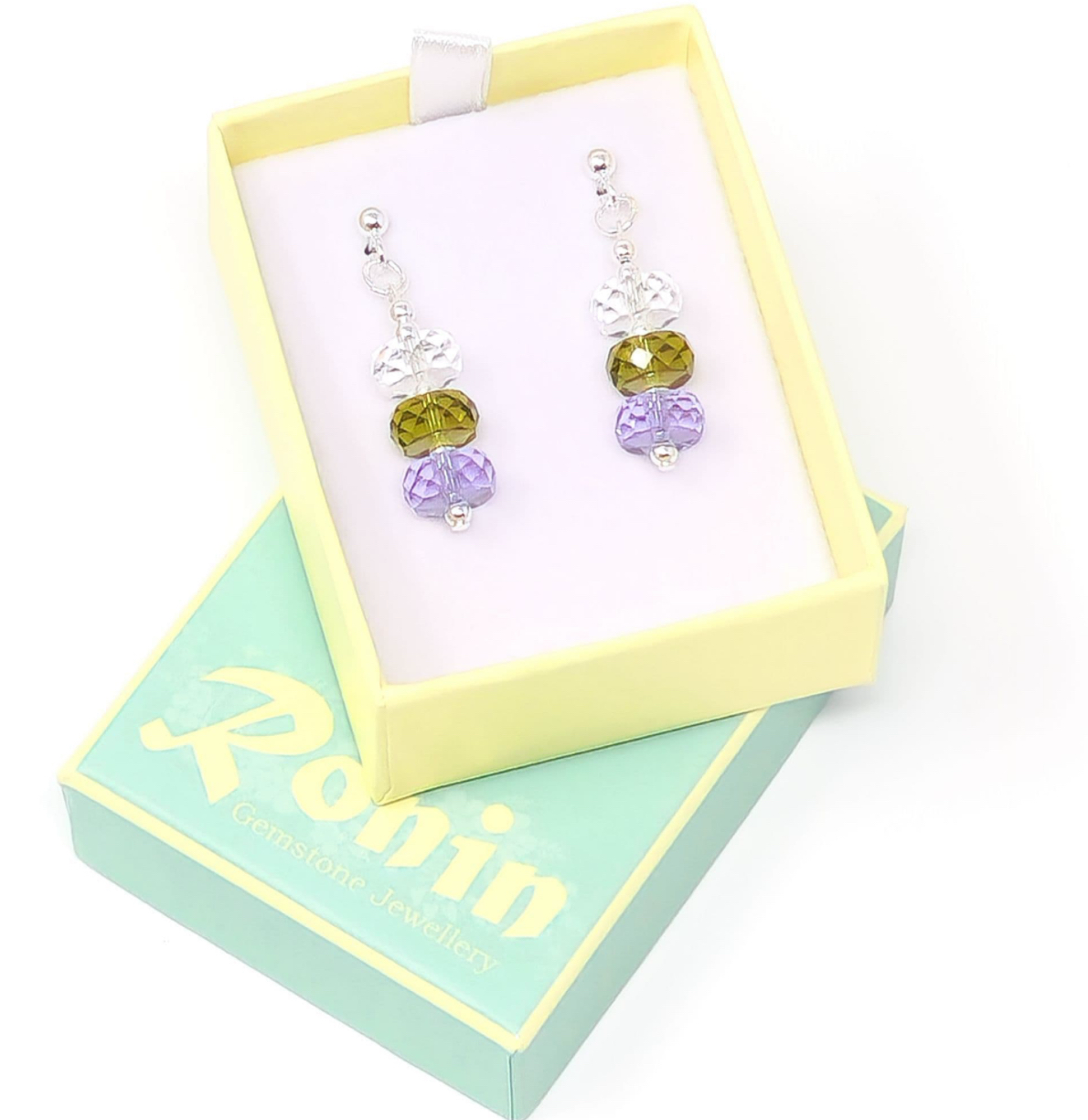 Stacked crystal beads in 3 colours..
