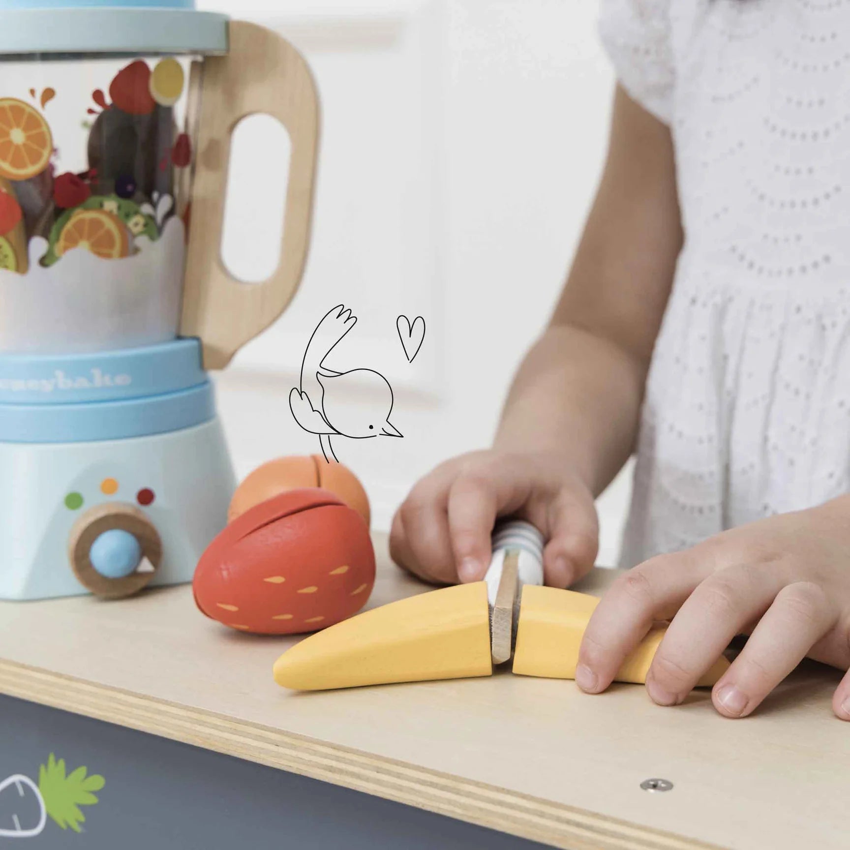 Whizz up some delicious smoothies in style with this fun, interactive set - the ideal accessory to any wooden toy kitchen.