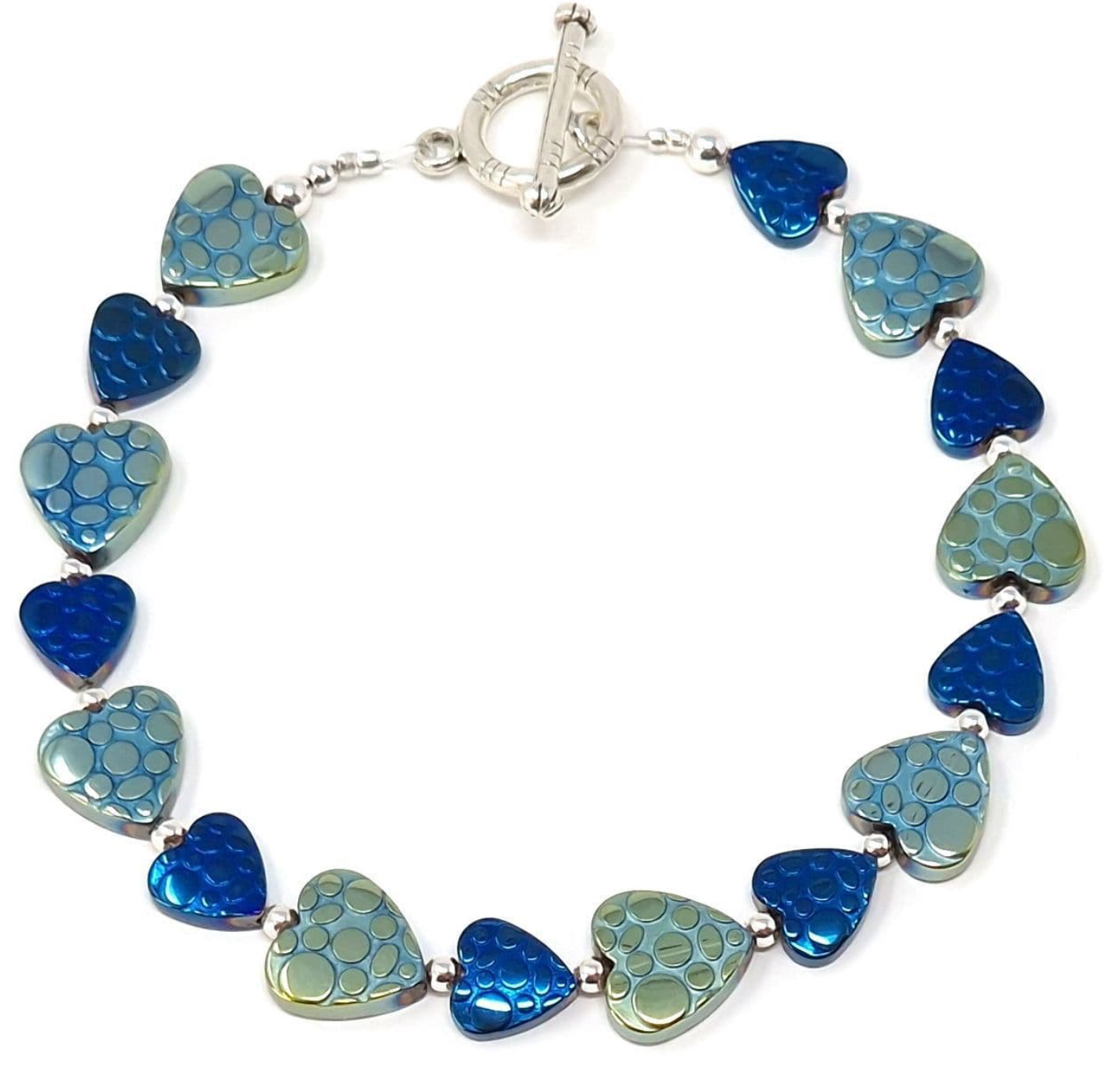 Hear shaped Haematite beads. Silver plated spacer beads.
