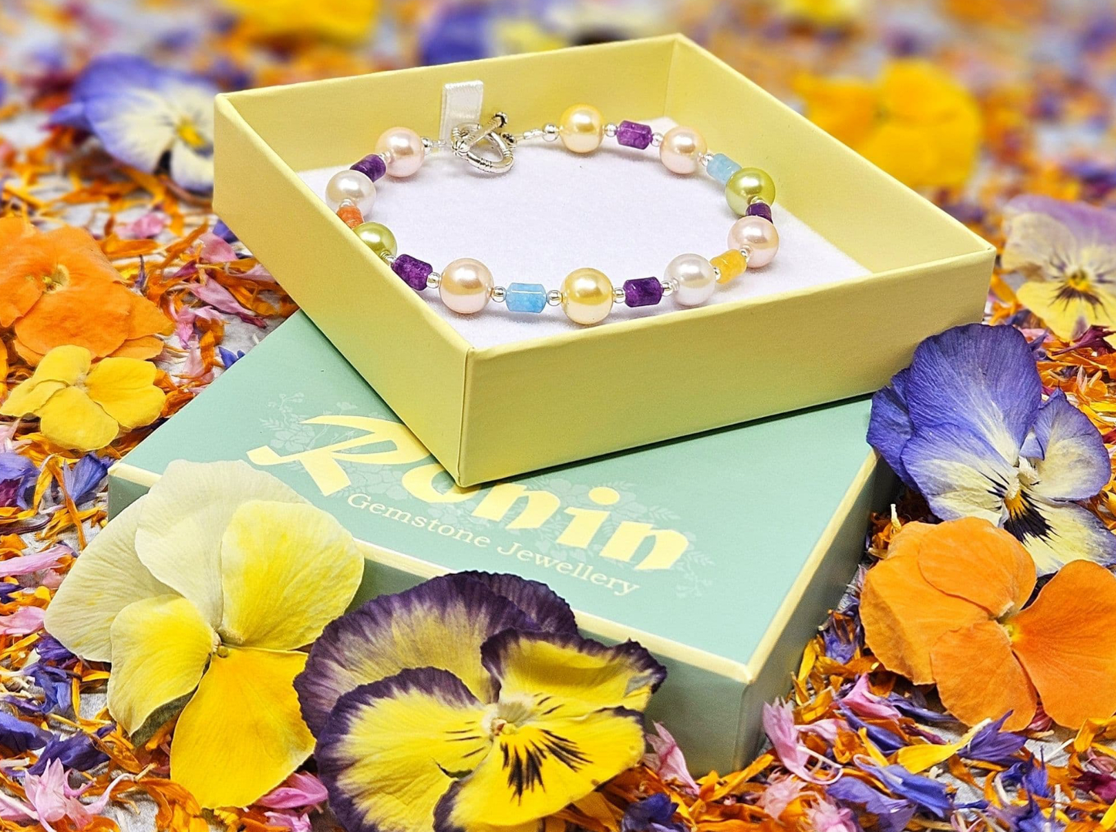 Semi-precious gemstone beads & South Sea Shell beads in an array of pastel colours. all with a lovely lustre.