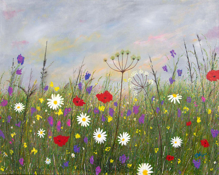 Description - Stunning summer meadow flower bed - an original acrylic on canvas painting.