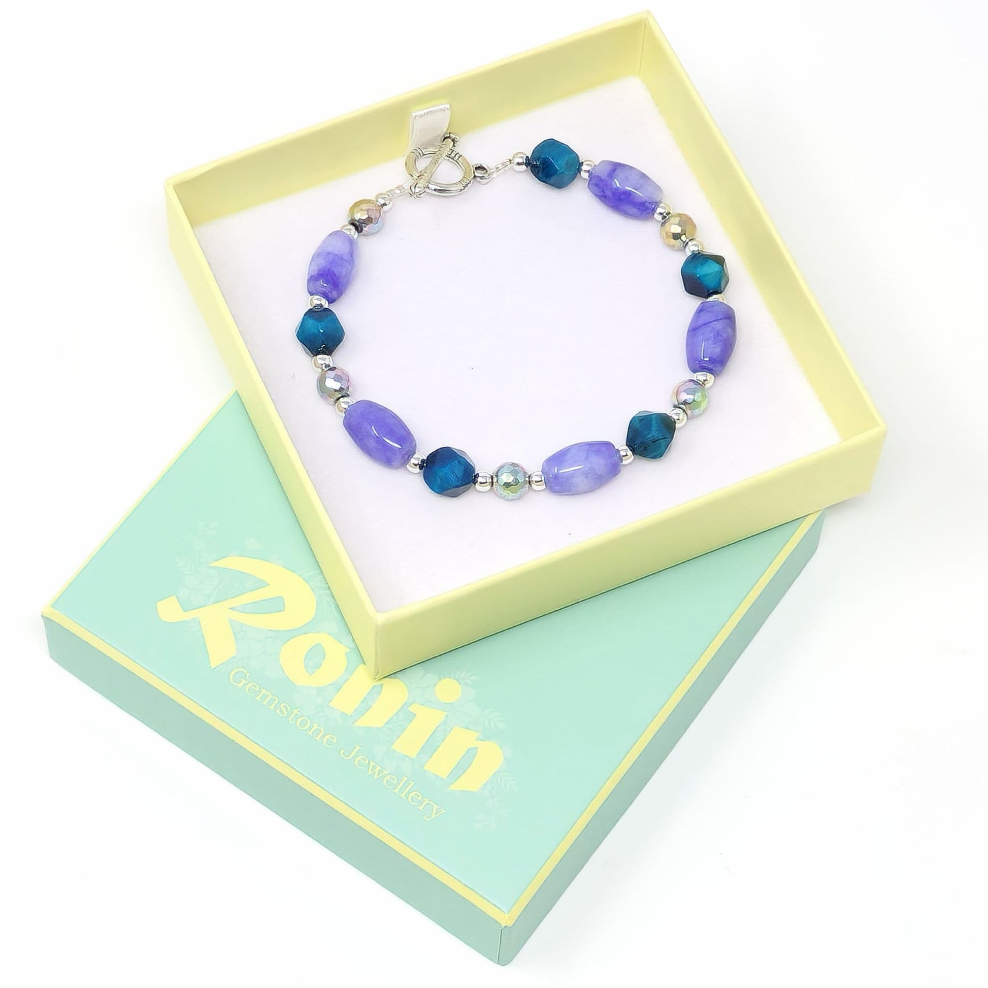 Dyed Tiger's Eye gemstones, semi-precious gemstone beads & Haematite beads.