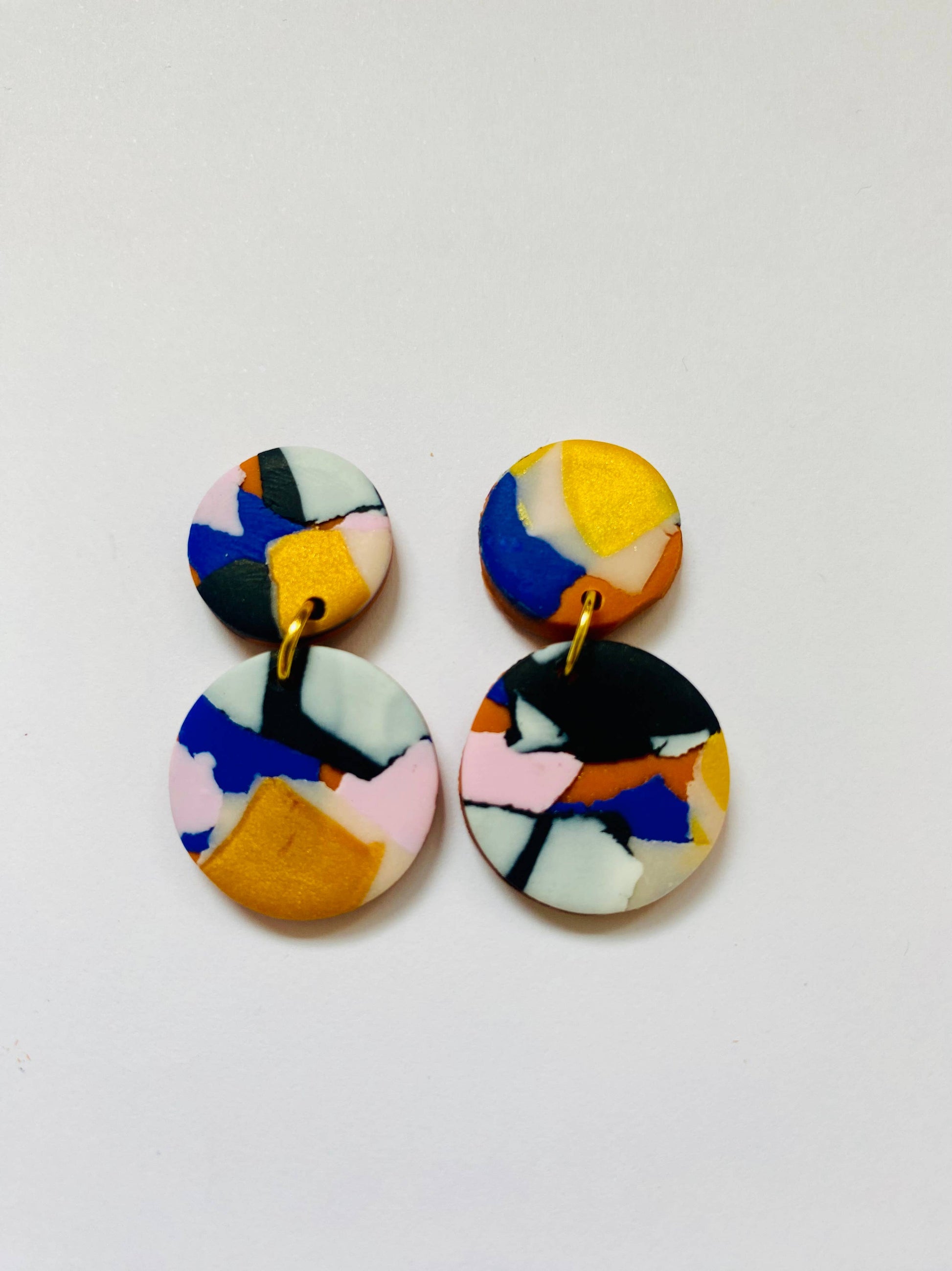Multicolour round drop polymer clay earrings.