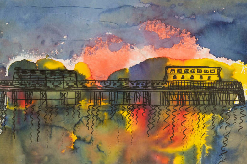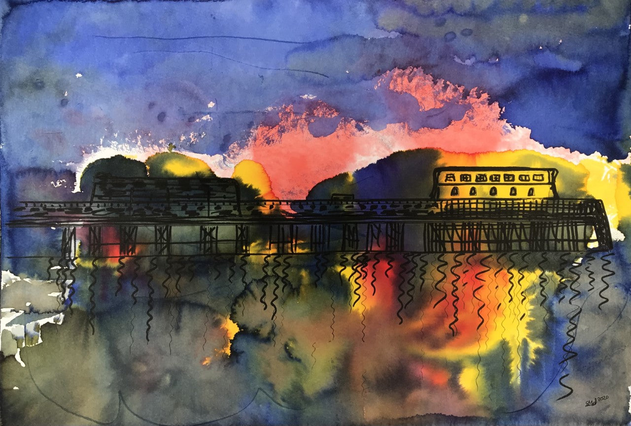 Ink on paper, where shadows play, Capturing Worthing pier in a unique way.