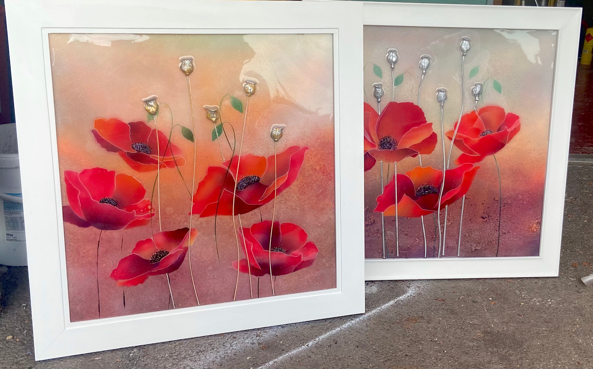 This striking original painting by Sussex-based artist Anthony Coppard (one of a pair) capture the delicate beauty and emotional resonance of poppies through his signature mixed media style. Known for his sculptural approach and tactile surfaces, Coppard’s work invites not just visual appreciation but physical engagement.