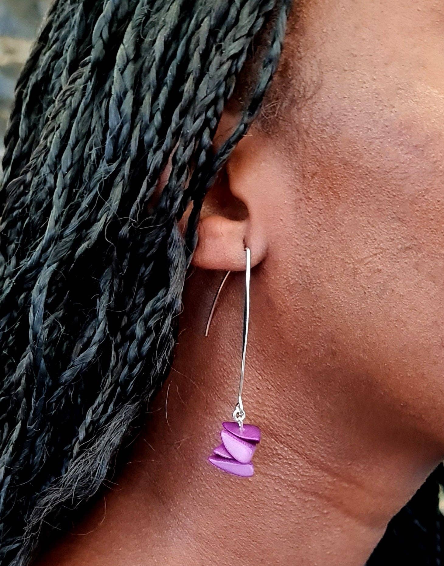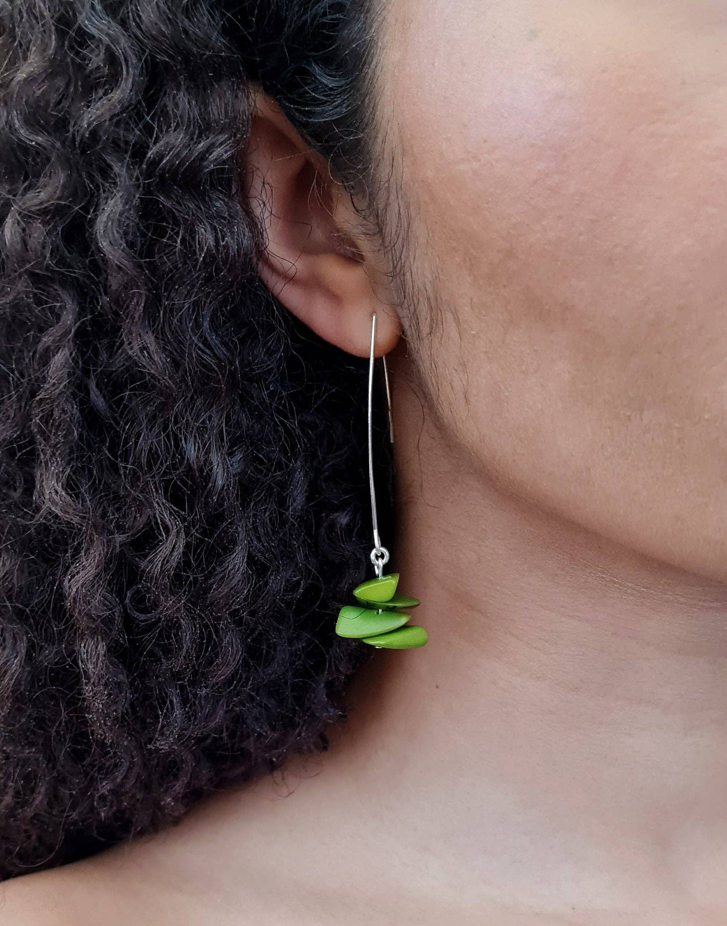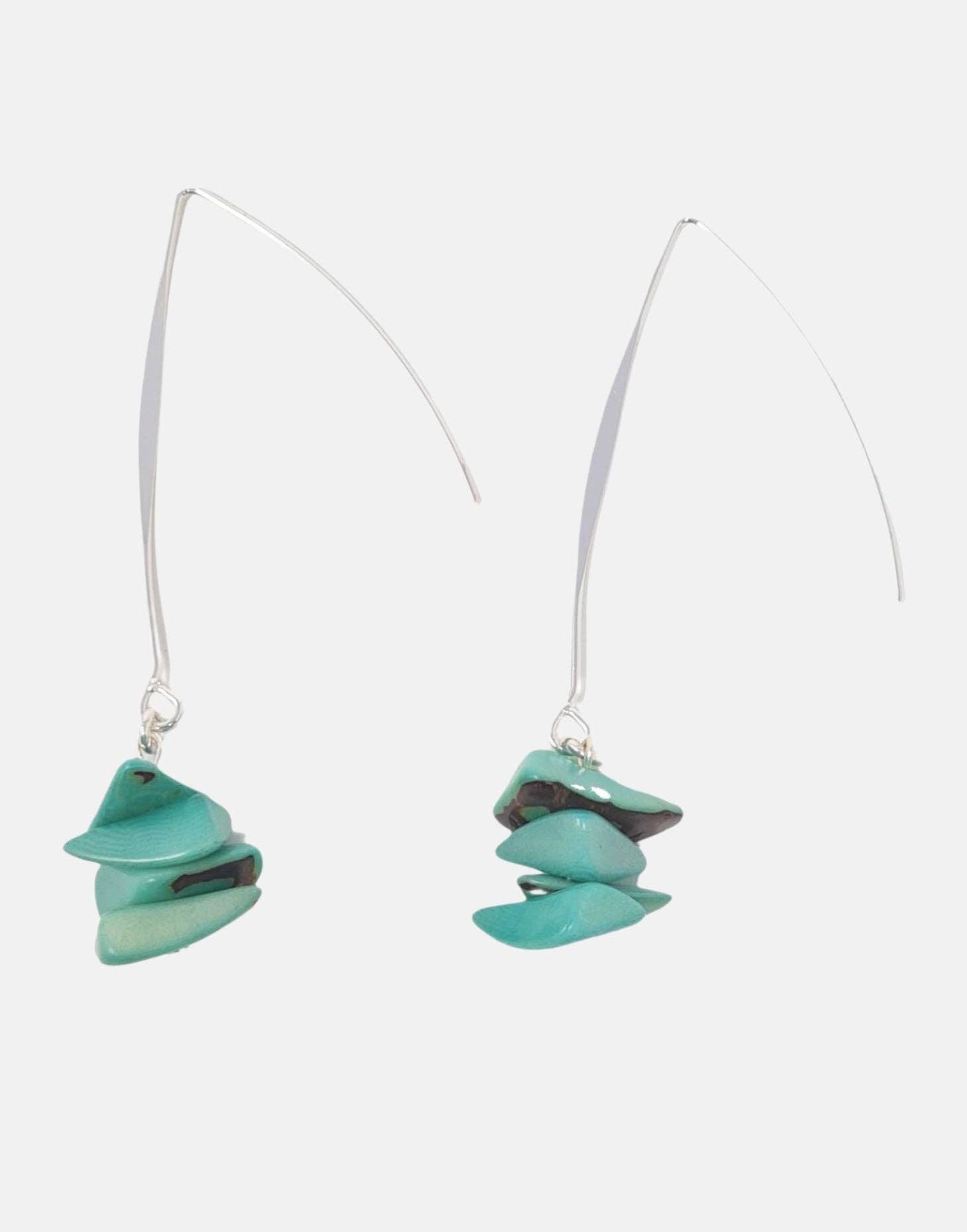 The shaves of tagua nut at the end adds a splash of colour and fun, to finish this super easy to wear earrings.