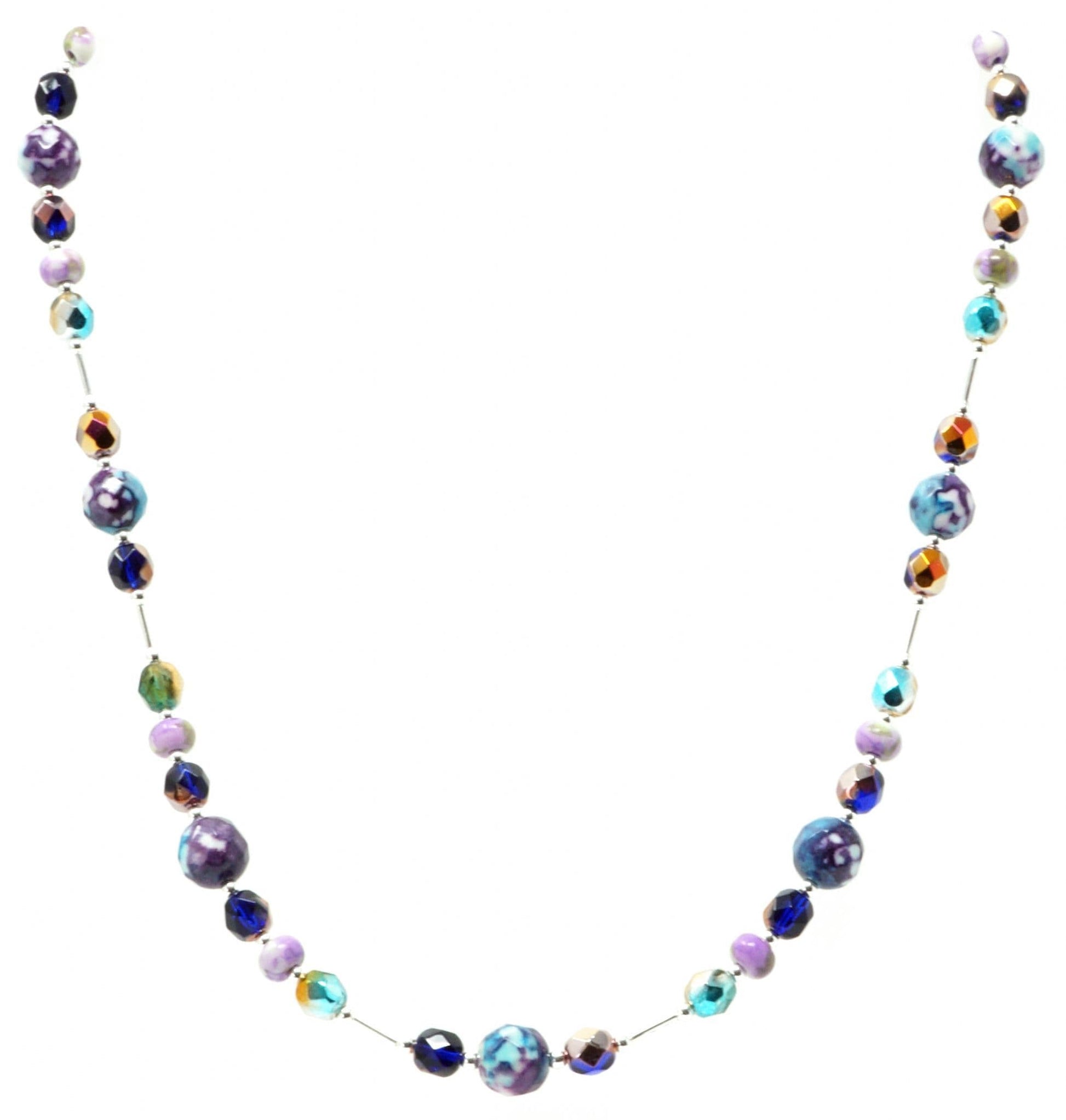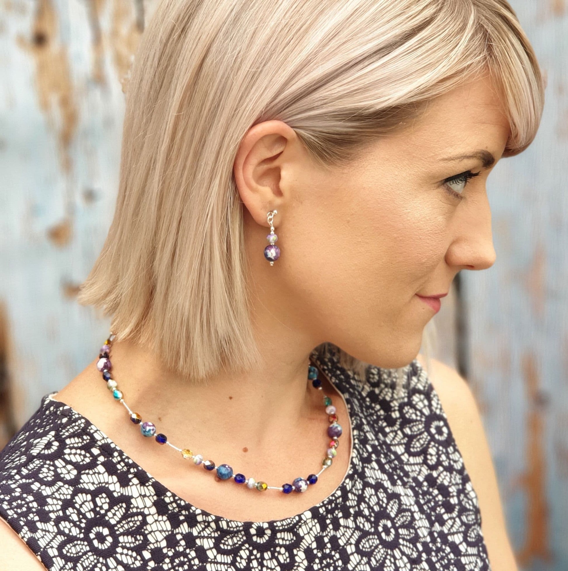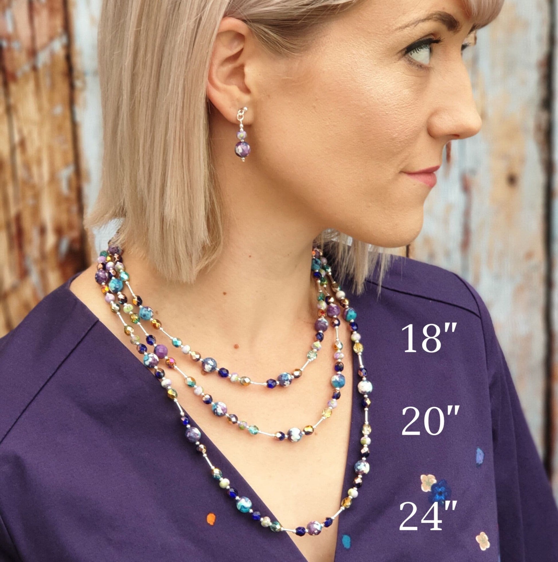Purple semi-precious gemstones, with a frosted finish, alongside beautiful glass beads & crystal rondelles.