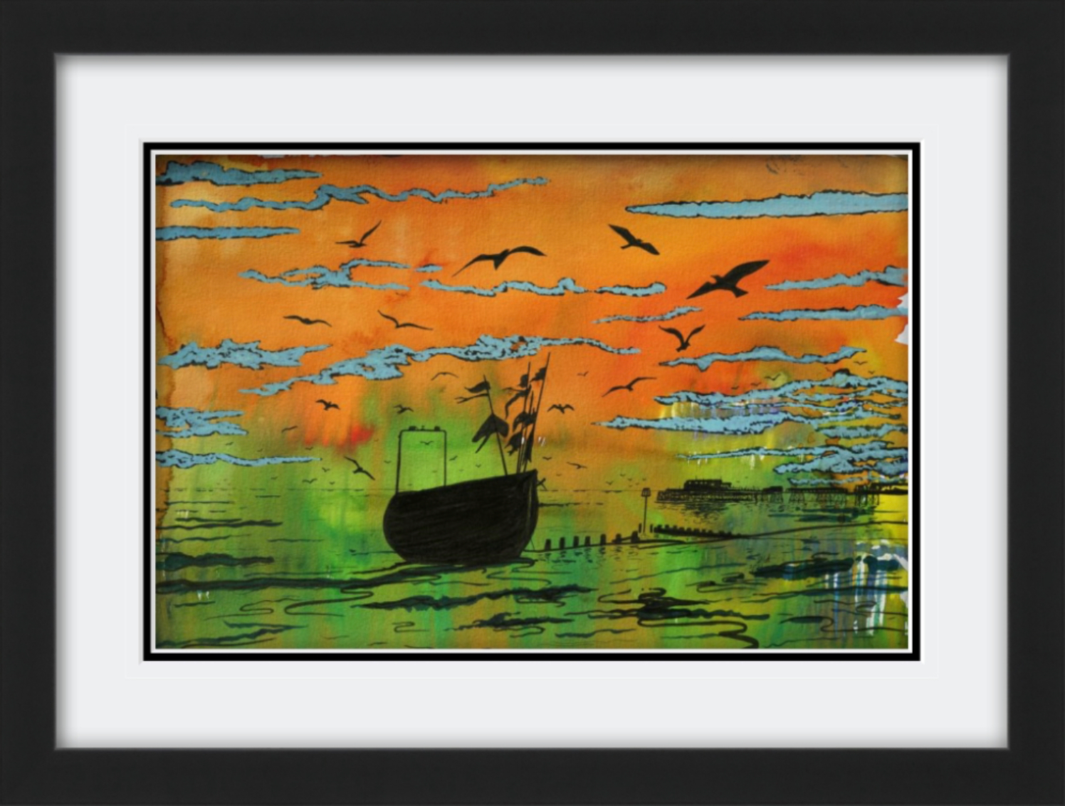 An ink-drawn boat, the pier’s noble stance, In this art, we sense a silent dance.