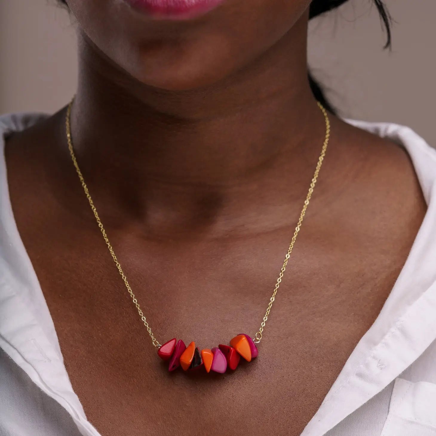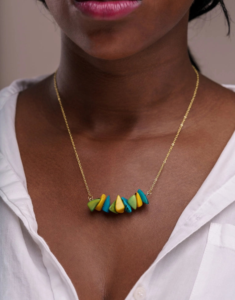 The Tapajos Tagua Chain Necklace is versatile and elegant, made with beautiful pieces of Tagua nut shavings that resemble stone cuts, perfect gift or for your everyday look handmade and organic jewellery.