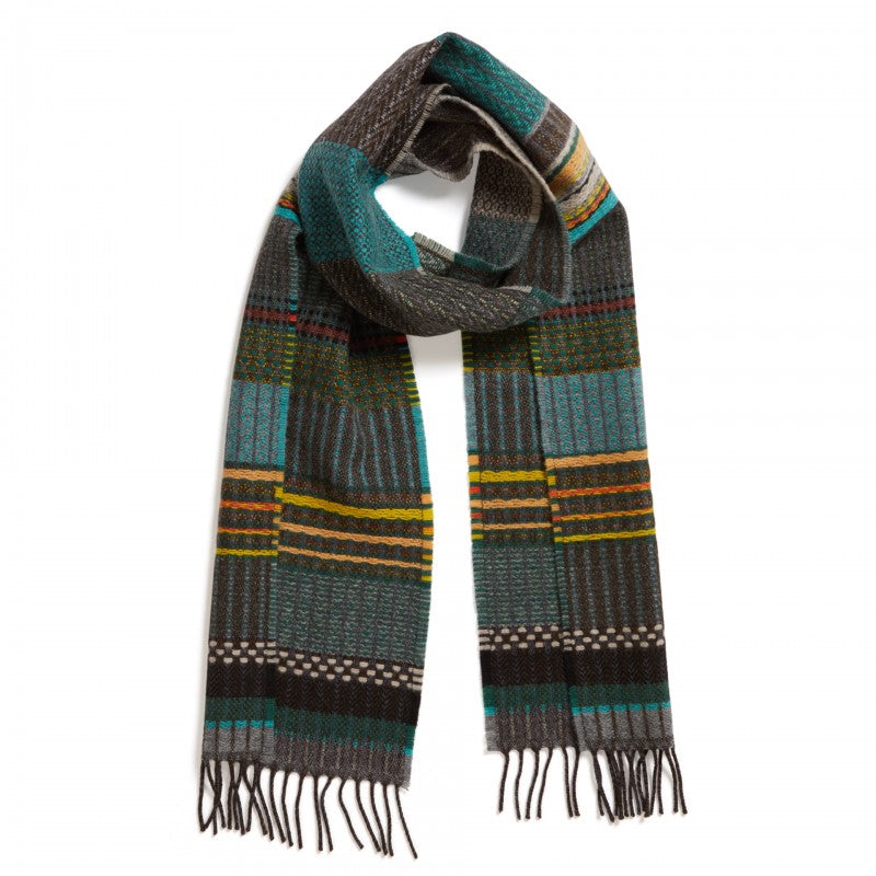 Wallace Sewell have woven an eye-catching classic style scarf in their lambswool range, using a palette of playful, contemporary hues and featuring a variety of patterns