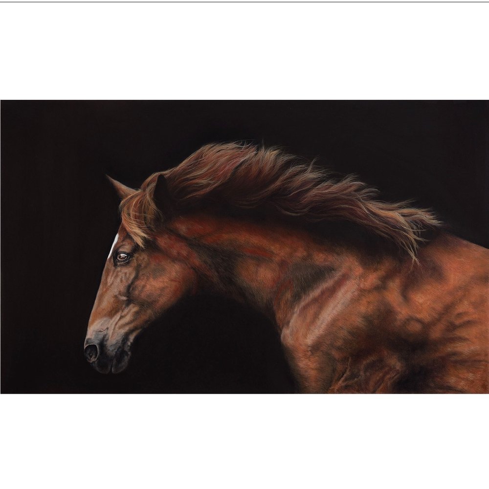 In this captivating original pastel drawing, the spirit of the racehorse comes alive on paper. Tricia skill fully captures the essence of this magnificent animal in full gallop, celebrating it’s grace, power and determination.
